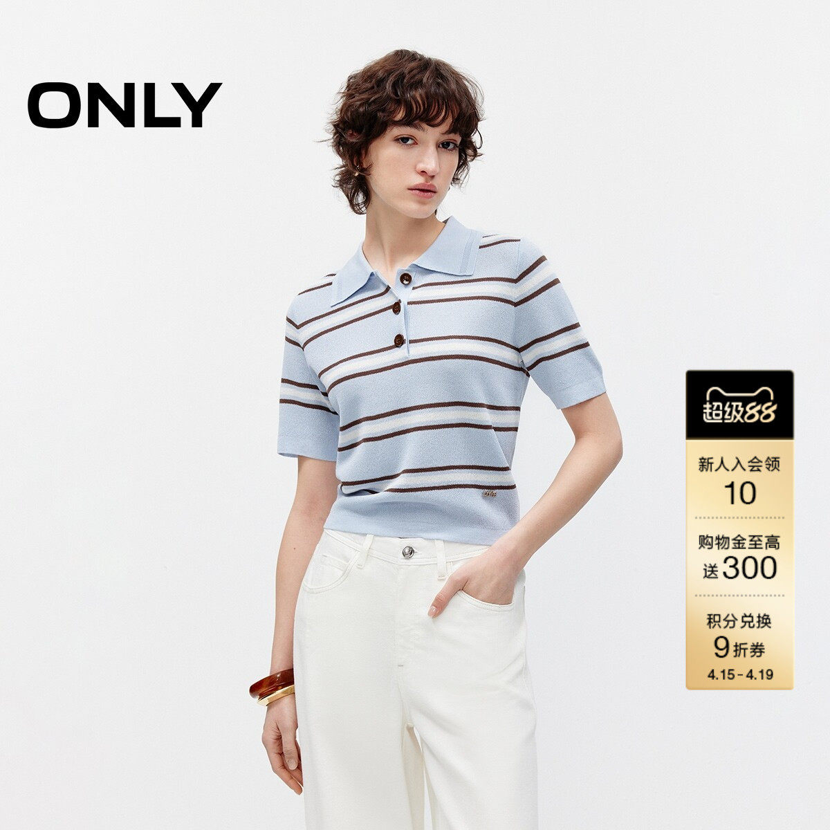 ONLY2026夏季新款简约经典POLO撞色条纹设计正肩短袖针织衫上衣女