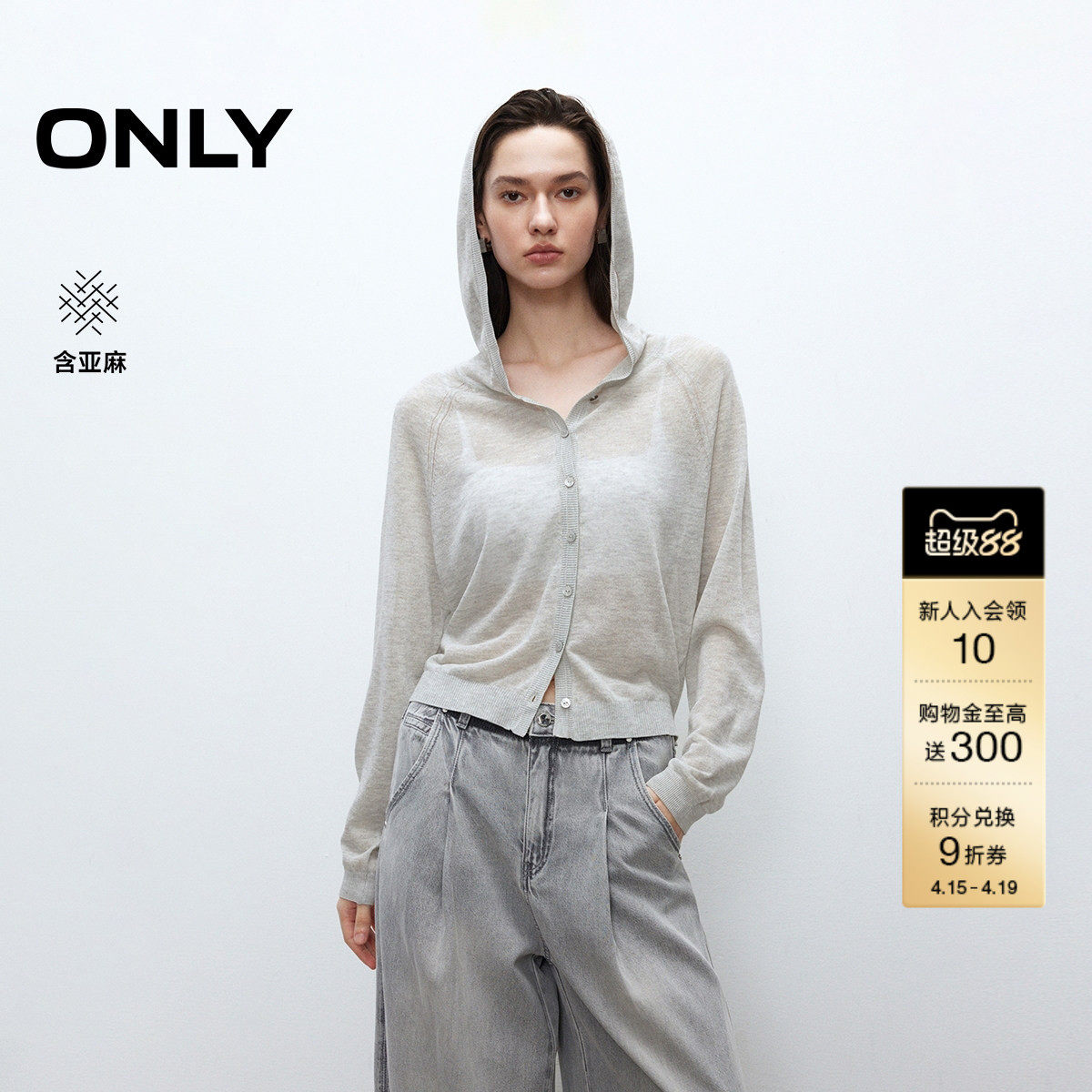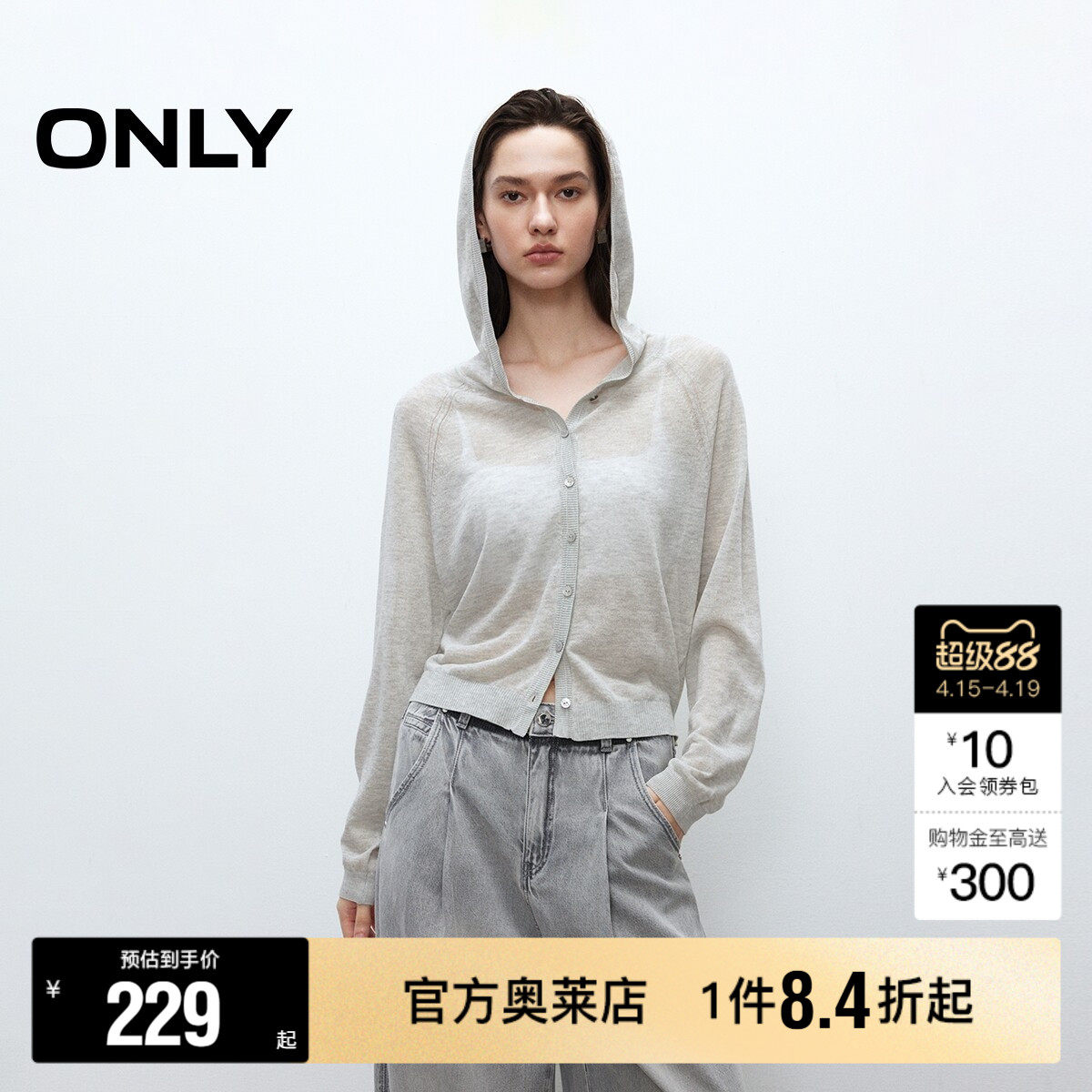 【ONLY奥莱】春季休闲薄款透气长袖插肩袖连帽纽扣开衫针织衫女