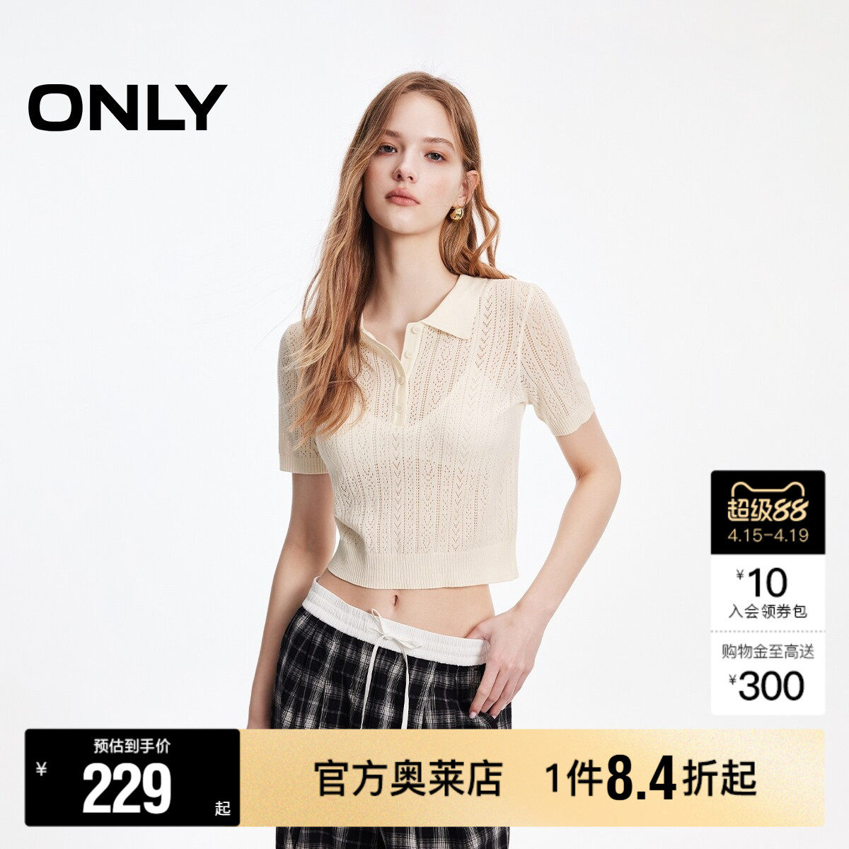 ONLY2026春季新款提花镂空柔软舒适亲肤正肩Polo领短袖针织衫女