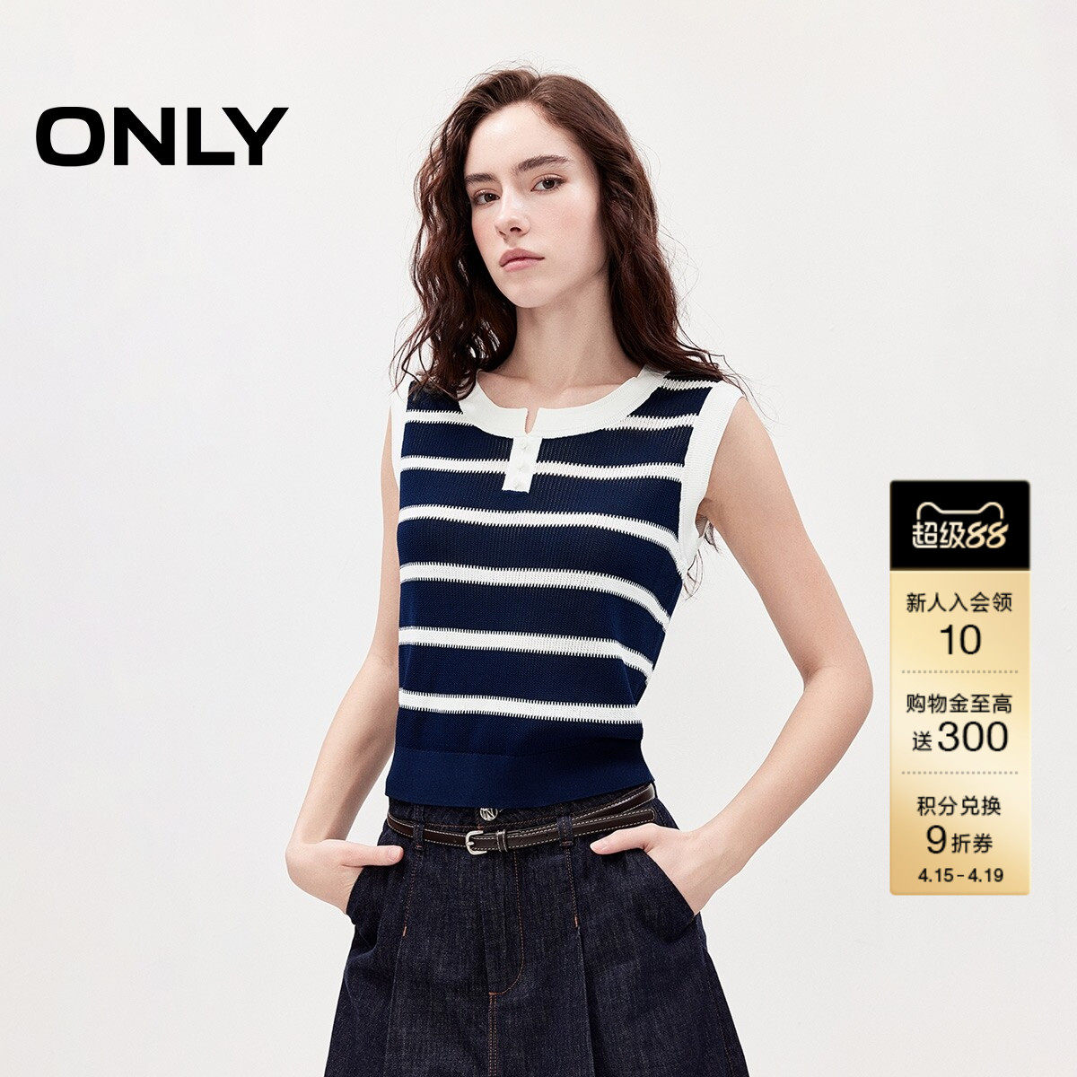 ONLY2026夏季新款时髦航海风舒适撞色条纹无袖短款圆领针织衫女