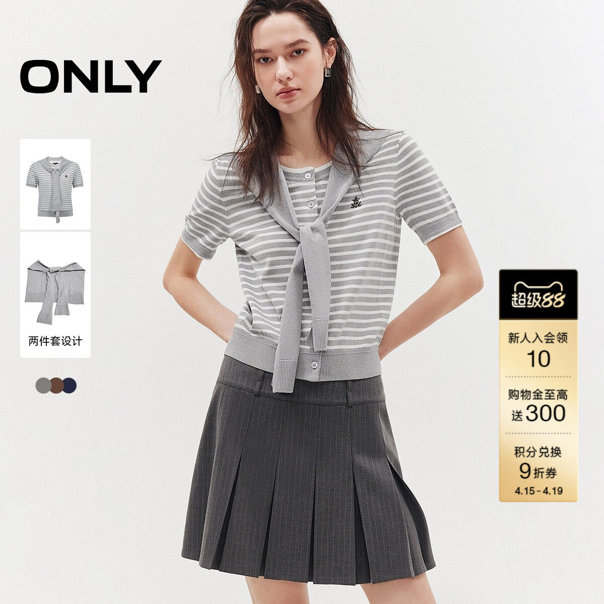 ONLY2026夏季新款老钱风可拆卸披肩套装短袖开衫针织衫上衣女