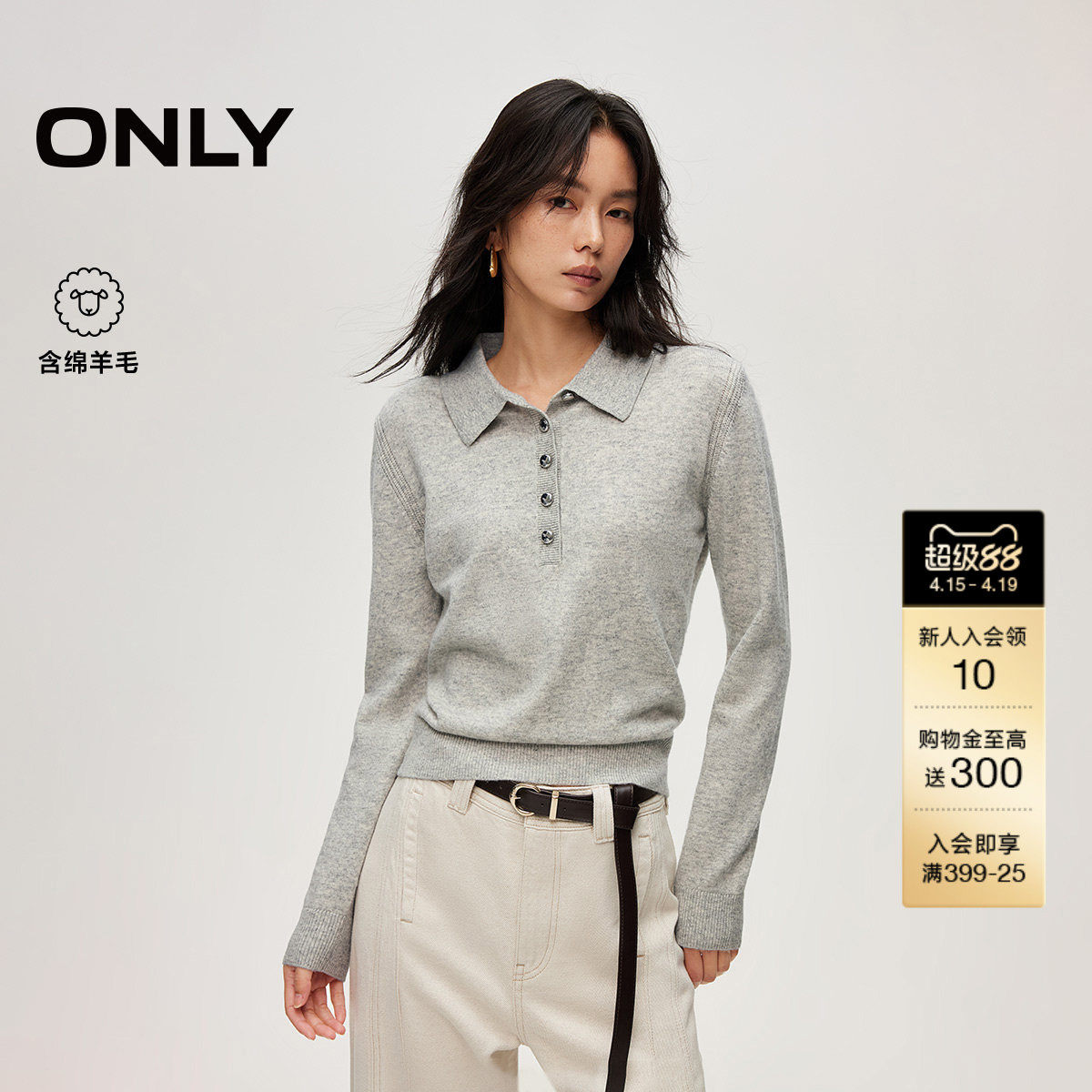 ONLY2026春季新款简约正肩含绵羊毛polo领金属扣毛衣针织衫上衣女