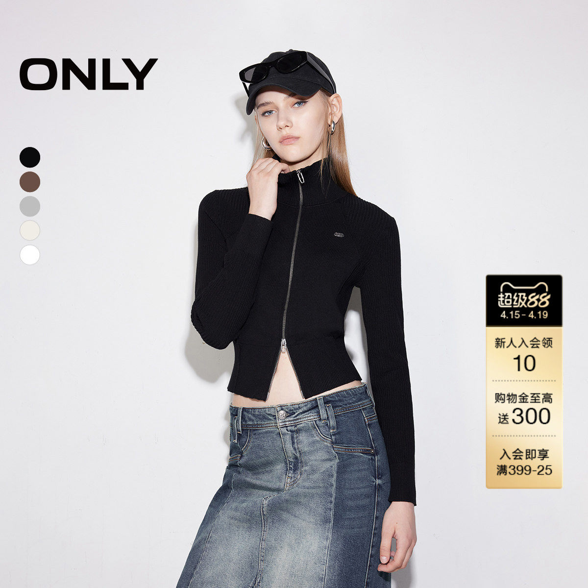 ONLY2026春季新款亲肤修身翻领双向拉链短款开衫长袖针织衫上衣女
