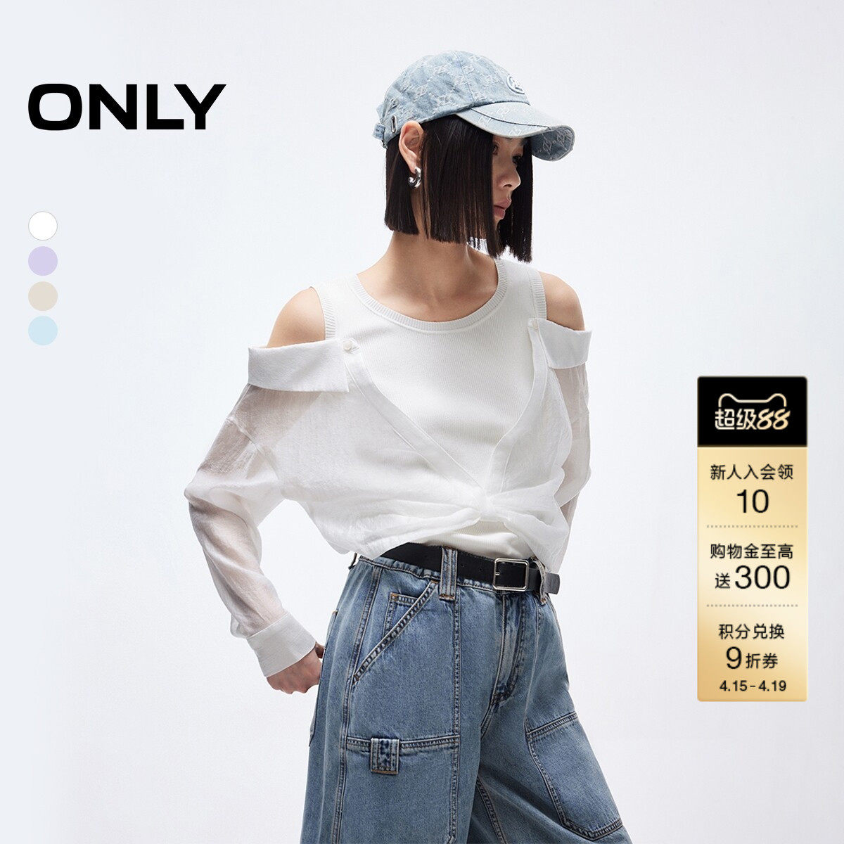 ONLY2026春季新款露肩一字领两穿约会纯色修身打底针织衫上衣女