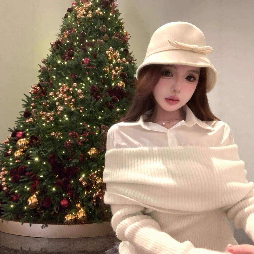 衬衣领套头毛衣女假两件套针织衫女相关商品