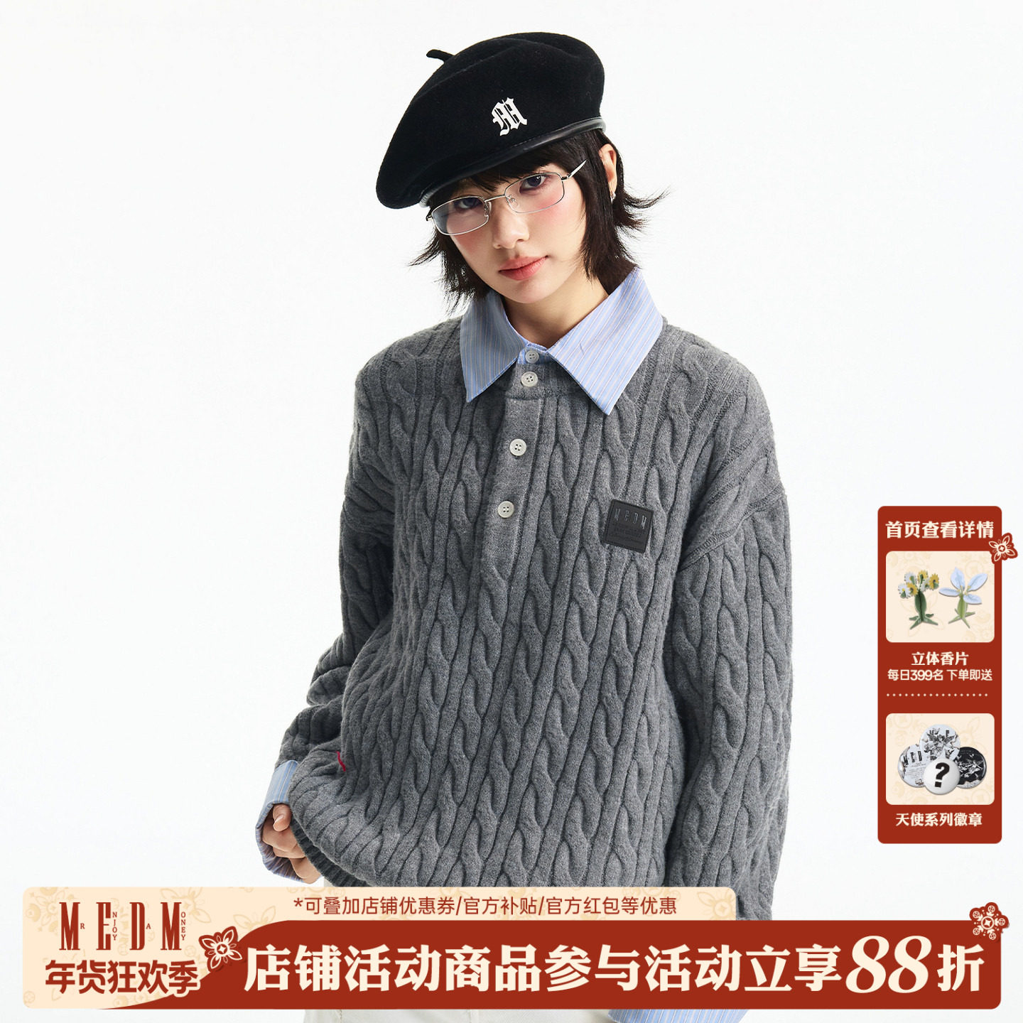 MEDM 套头假两件衬衫领袖亨利衬衫领休闲毛衣简约男女套头针织衫