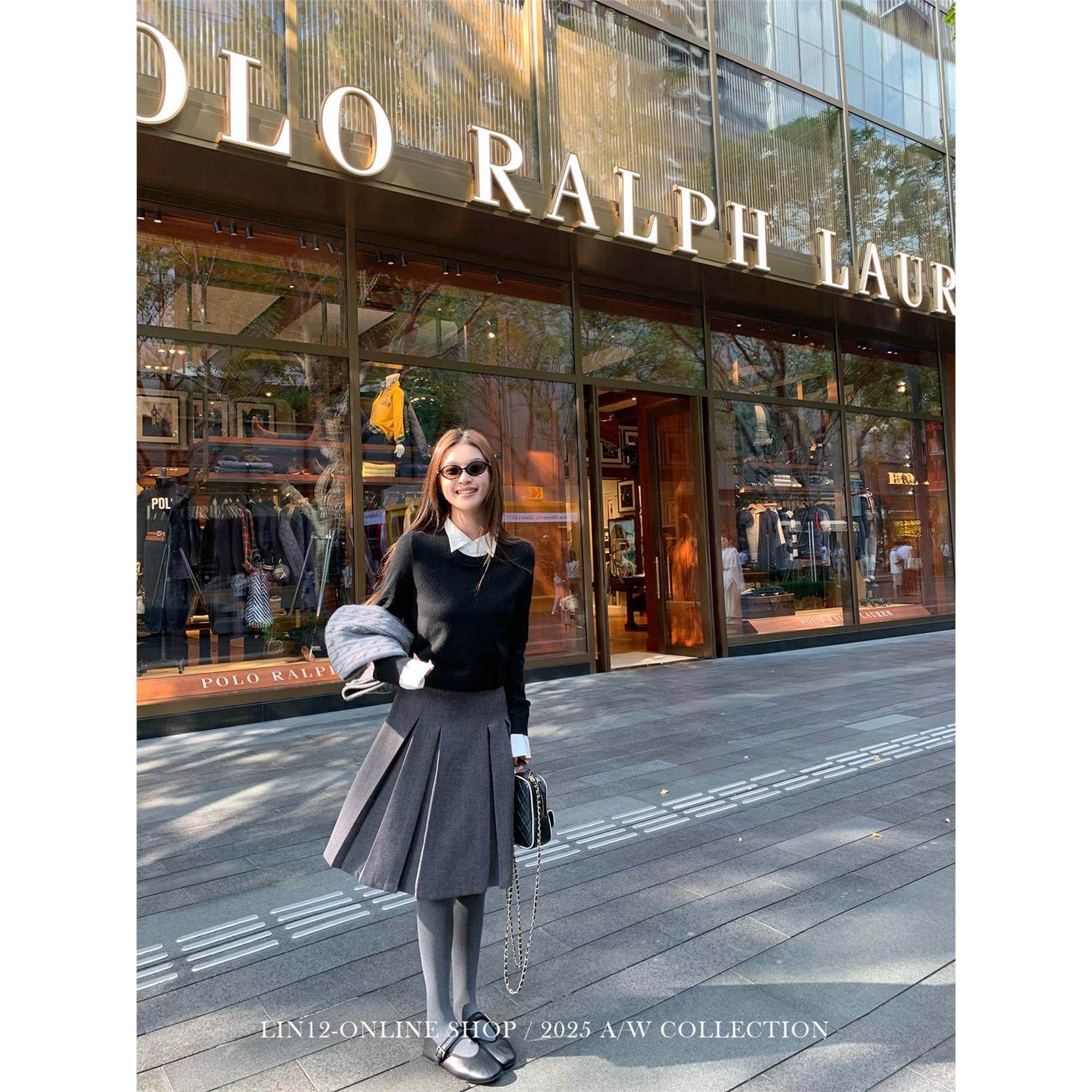 【非正式学院】a02学院风假两件针织衫女2025衬衫领减龄套头毛衣