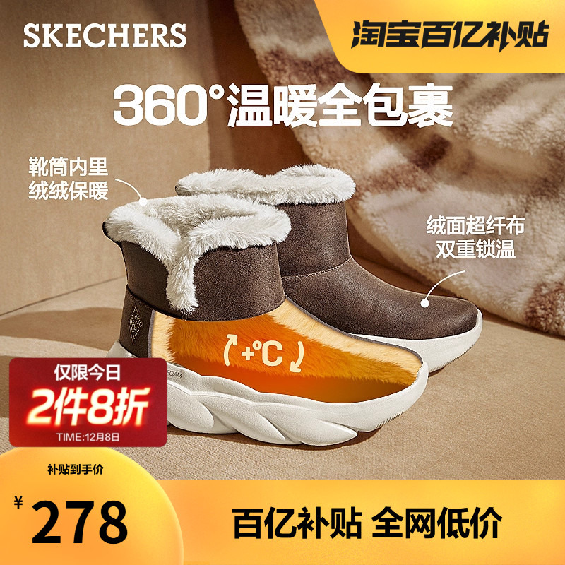 斯凯奇麻薯靴冬季女款加绒保暖雪地靴厚底增高中筒冬靴棉鞋防寒靴