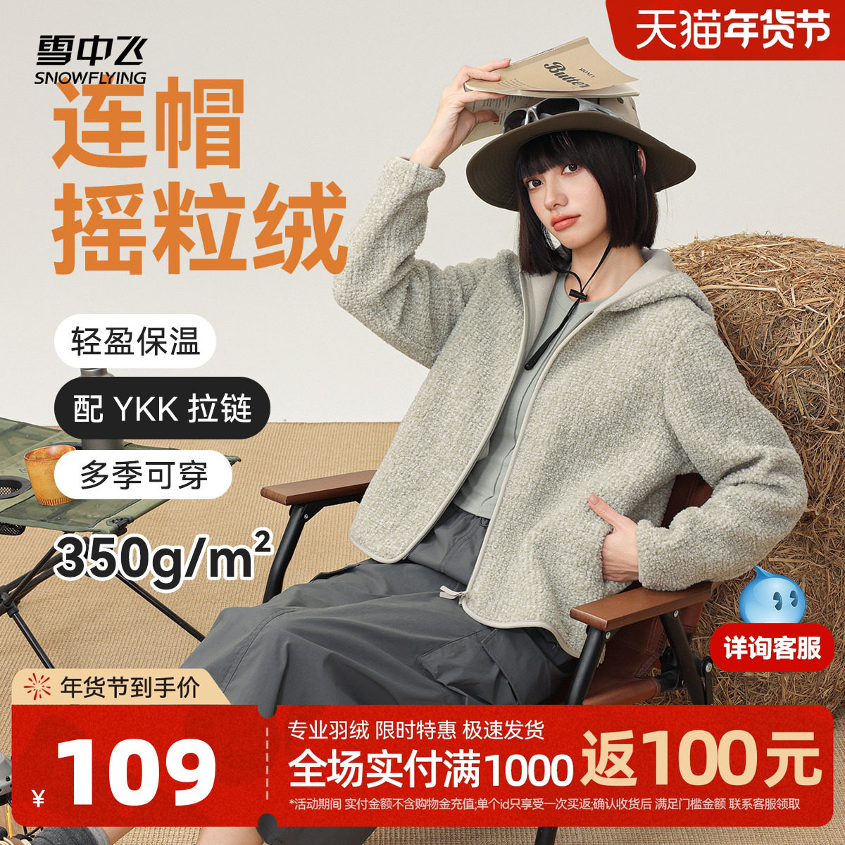 雪中飞2025春秋新款女士短款连帽摇粒绒外套简约基础百搭时尚休闲