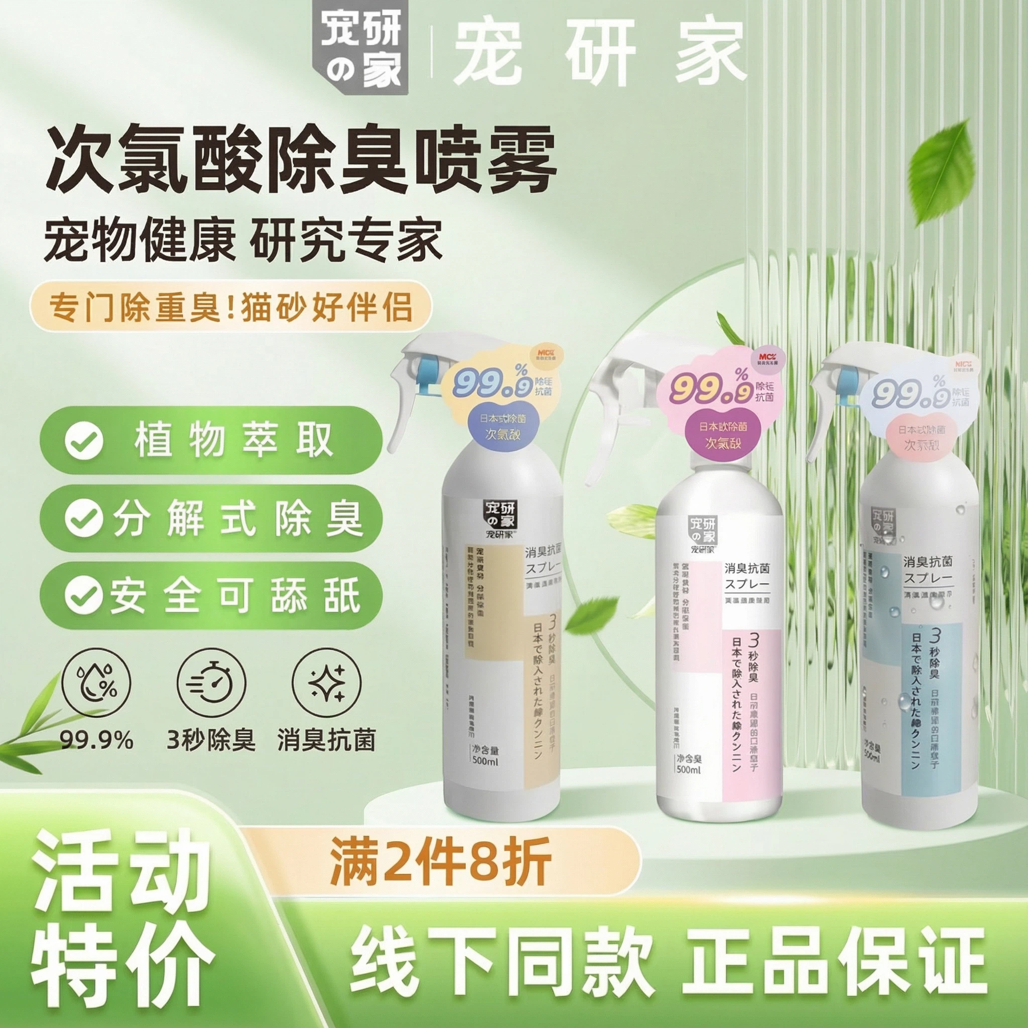 宠研家除臭剂祛味喷雾宠物环境杀菌去尿味猫砂狗尿猫尿除味次氯酸