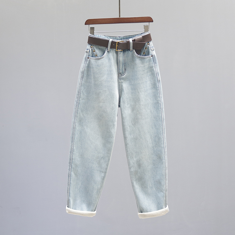 - 女加绒牛仔裤直筒