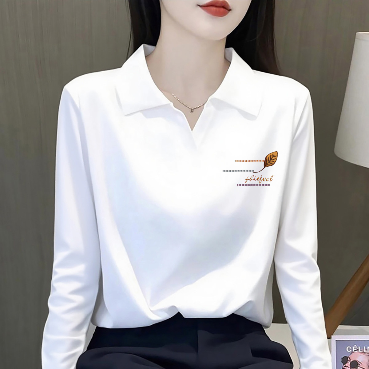 外贸欧货捡漏女秋冬打底内搭宽松大码设计感翻领Polo长袖上衣体恤