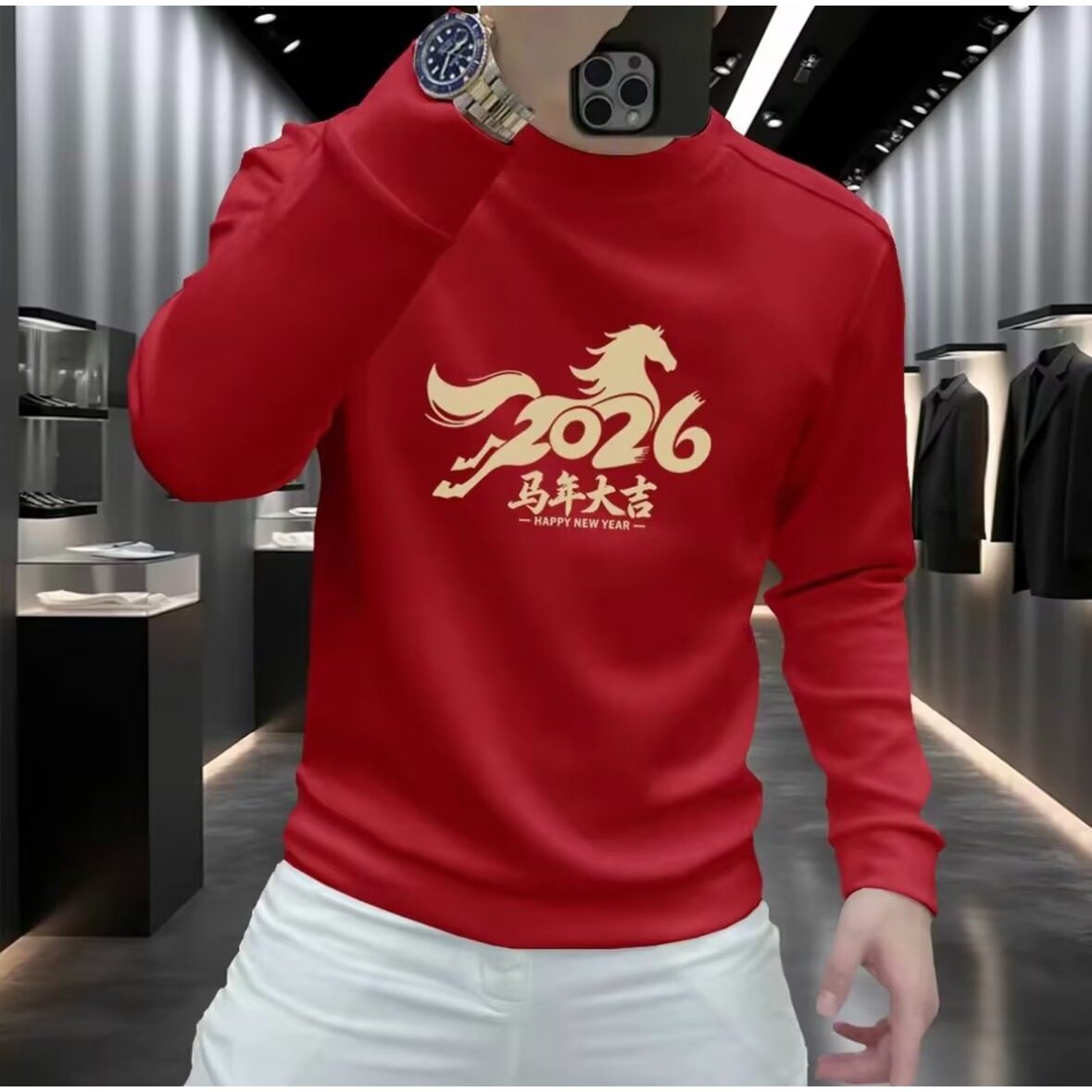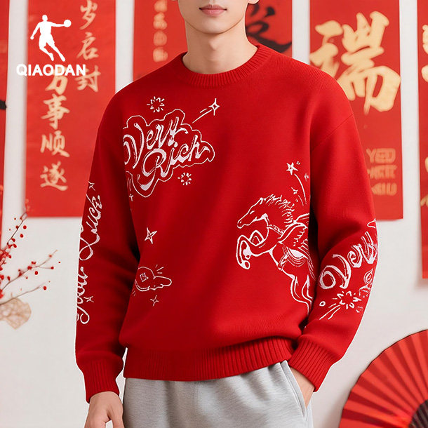 乔丹新年红色印花卫衣男马年本命年2026春季新款圆领长袖上衣体恤