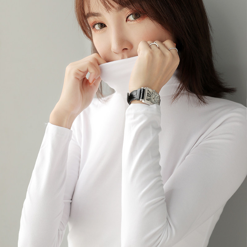 纯棉高领时尚修身显瘦内搭打底衫女秋冬韩版百搭紧身长袖上衣体恤