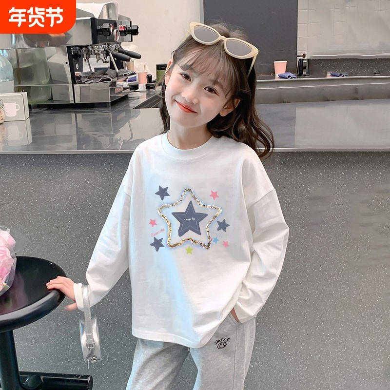 女童t恤春秋装纯棉打底衫2025年新款中大儿童卡通长袖上衣体恤潮