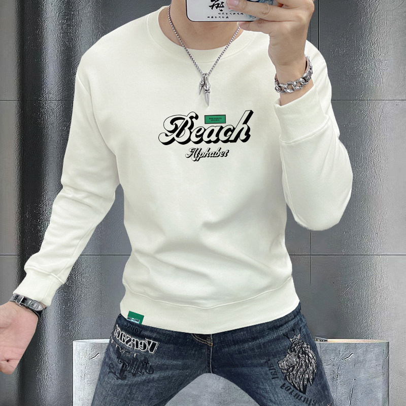 卫衣男士秋冬新款字母印花圆领长袖上衣体恤衫修身百搭无帽美式衣