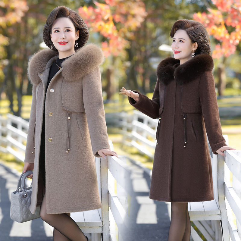 - 中老年毛呢大衣女长款