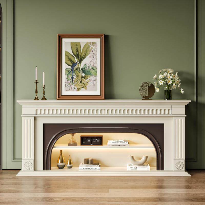 法式简美轻奢电视柜实黑无品牌/色真火取壁炉柜大尺暖寸木装仿饰