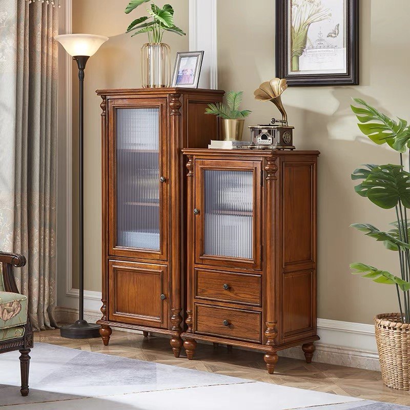 美式实木酒柜客厅展示柜简美中古风靠墙玻璃门储物柜电视边柜组合