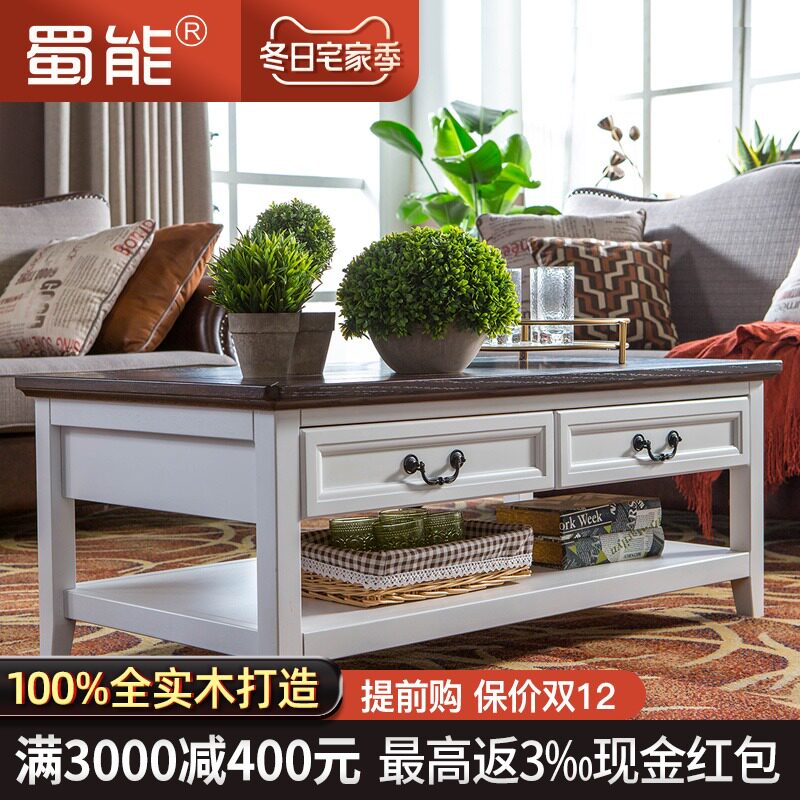 和年美家复古美式实木艾美茶几简美茶桌电视柜组合客厅抽屉咖啡桌
