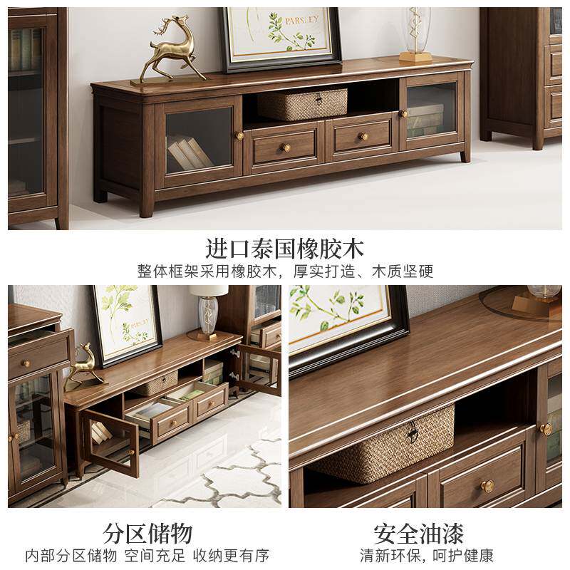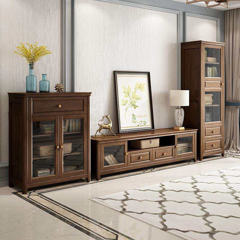美式全实木高端简美电视柜客厅复古胡桃木色大容量轻奢地柜小户型