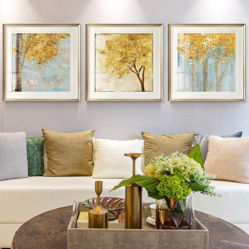 美式客厅装饰画摇钱树简美电视柜挂画餐厅墙覆古卧室床头轻奢壁画