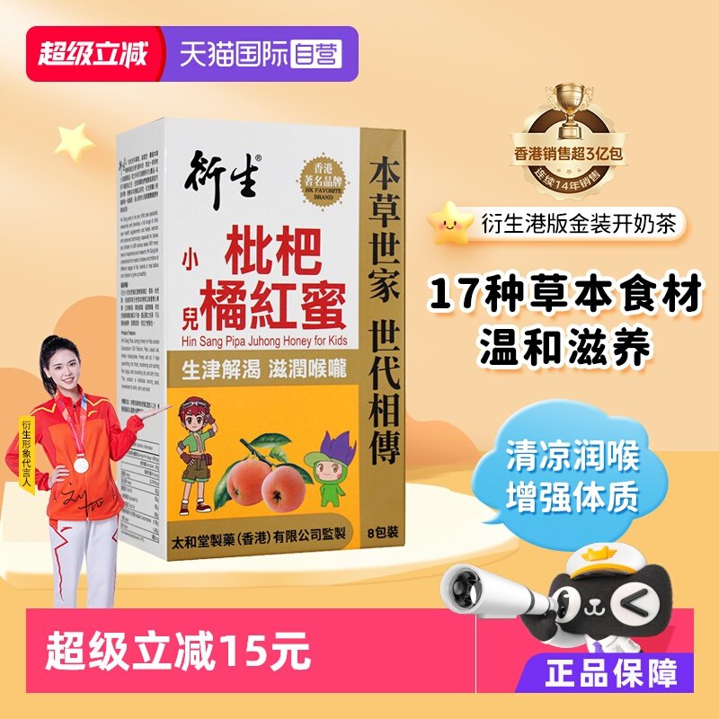 【自营】衍生港版枇杷橘红蜜幼儿清火儿童生津止渴滋润喉咙8条/盒