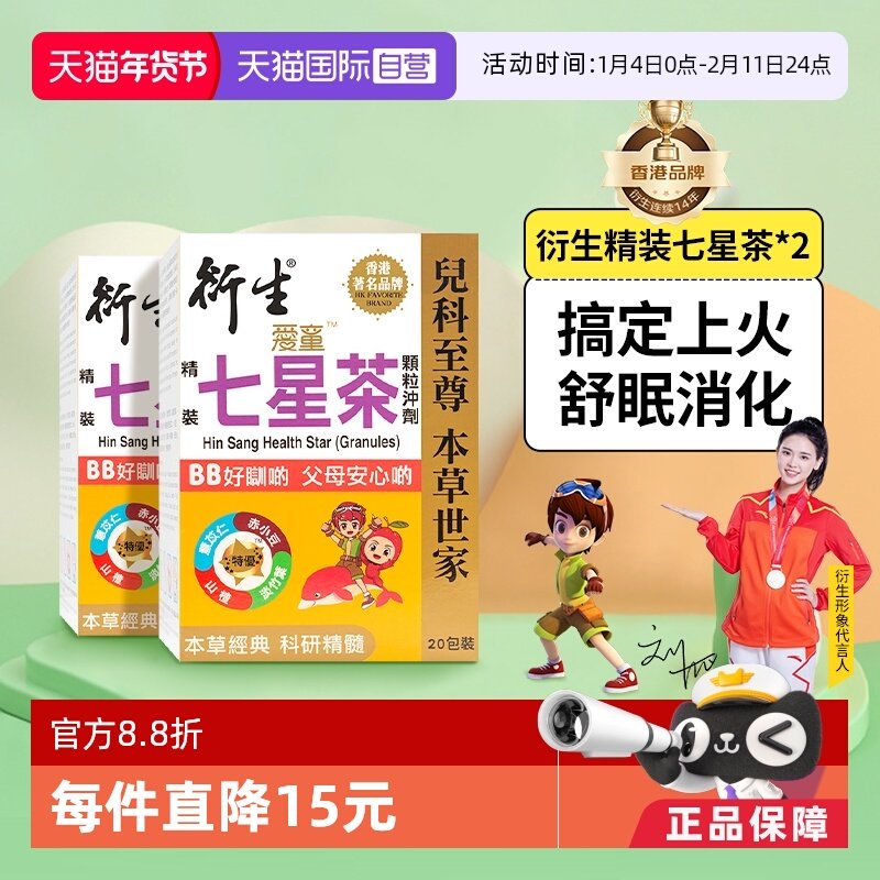 【自营】衍生港版精装七星茶顆粒儿童清燥热祛火凝神舒眠20包*2盒