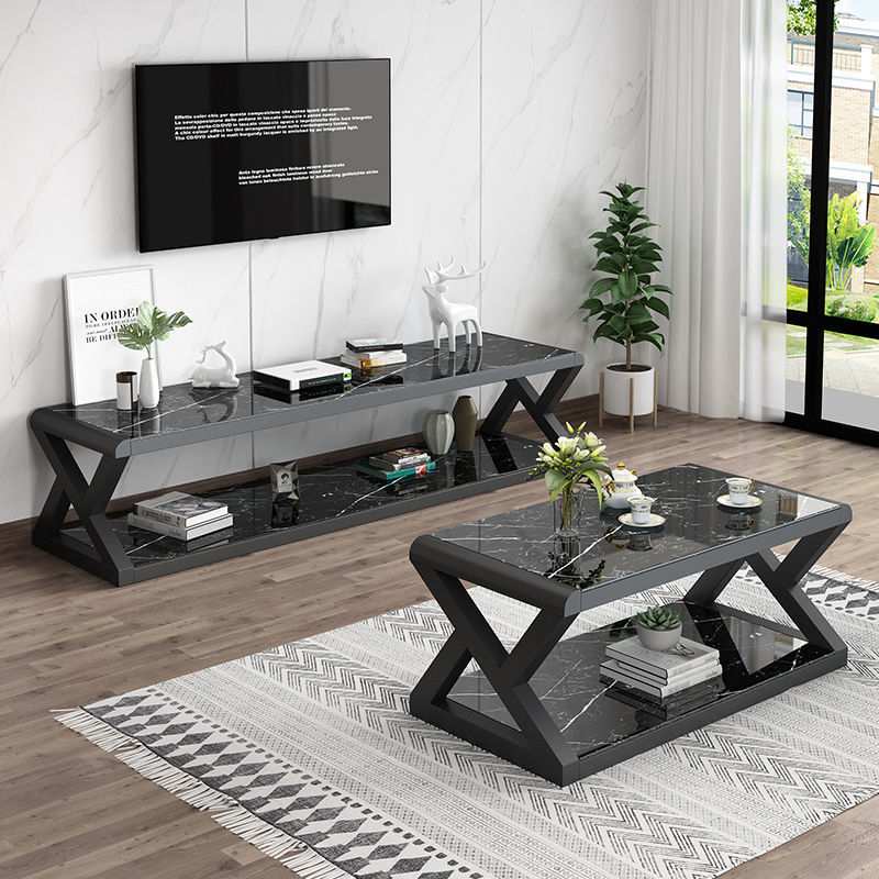 简约现代客厅电视柜钢化玻璃客厅柜茶几组合铁艺烤漆厂家厂家直销