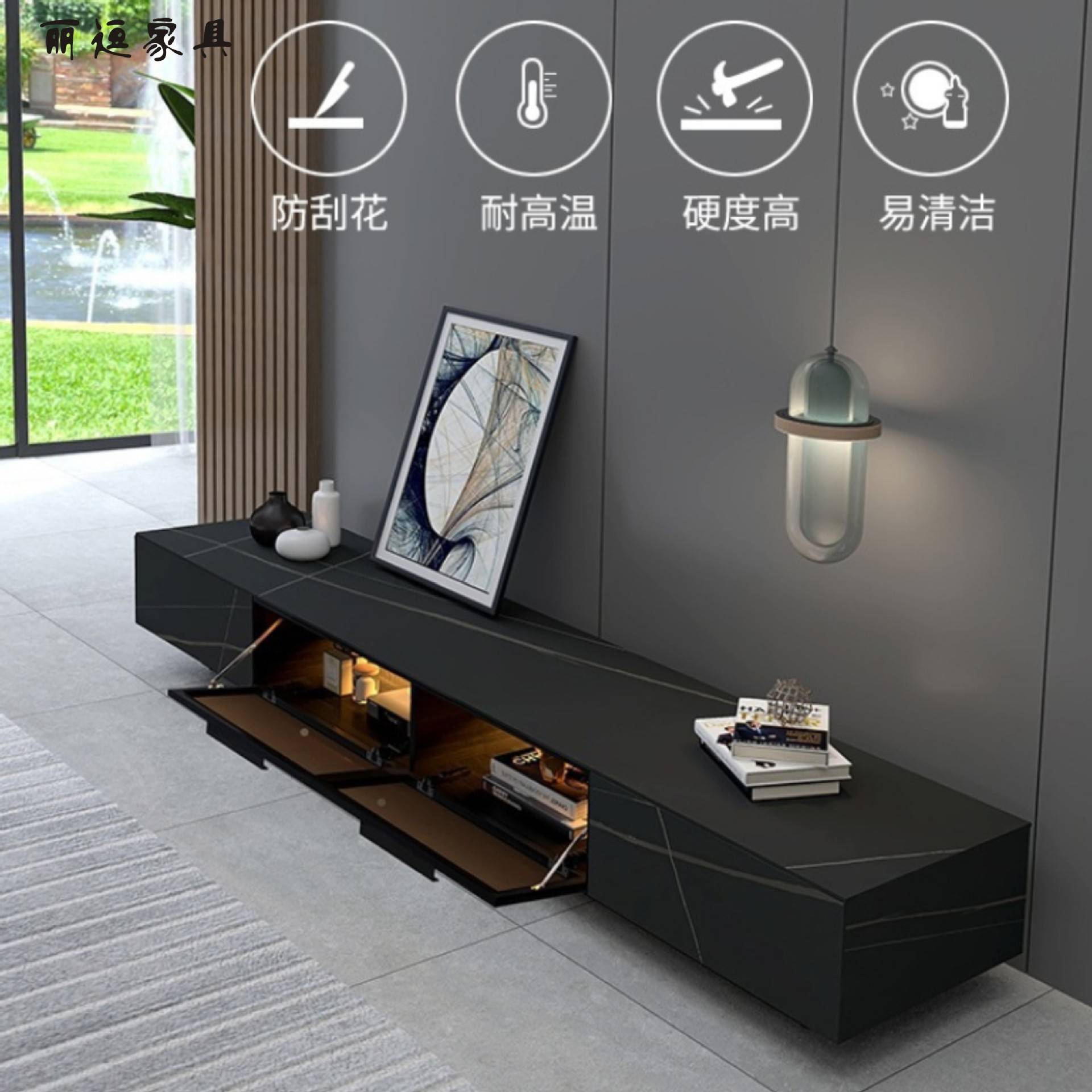 大理石电视柜钢化玻璃 轻奢组合茶几风面现代简约伸缩电视柜客厅