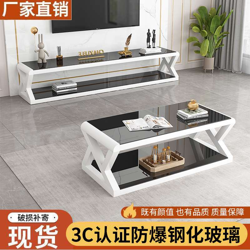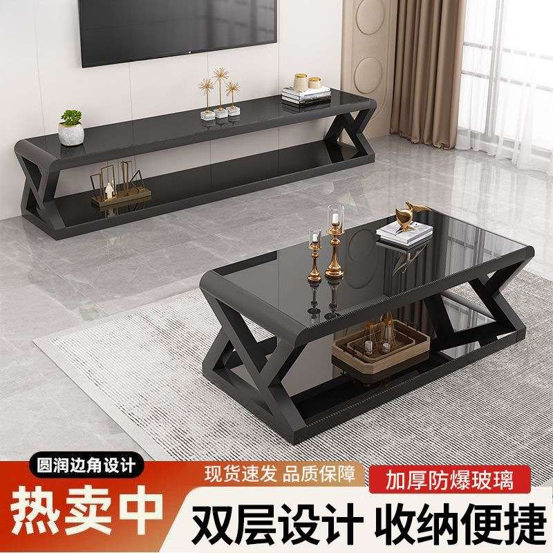茶几客厅家用茶桌轻奢新款现代简约小户型电视柜钢化玻璃组合茶台