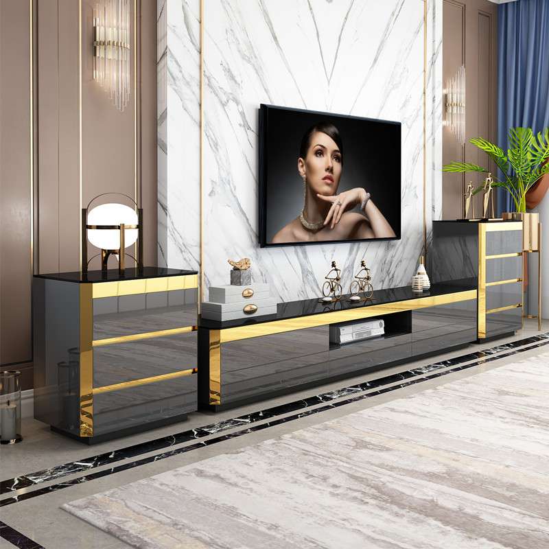 后现代时尚不锈钢镀金茶几电视柜钢化玻璃烤漆茶几地柜组合多抽屉