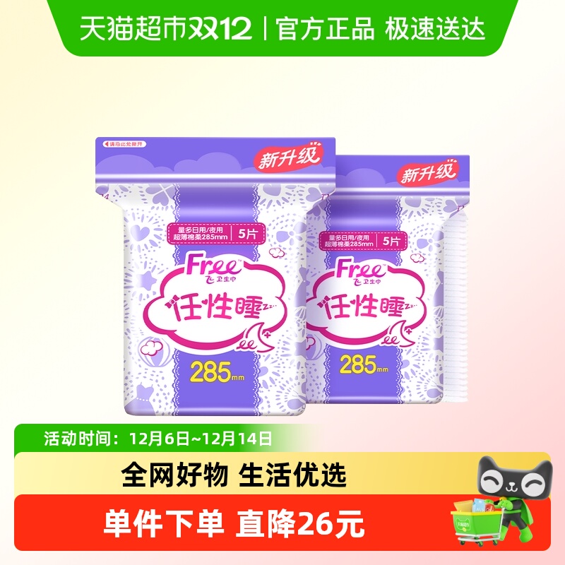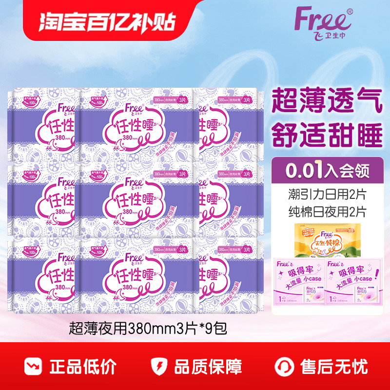 Free/飞裤型卫生巾女绵柔透气夜用小裤丫特薄任性睡加量装包邮