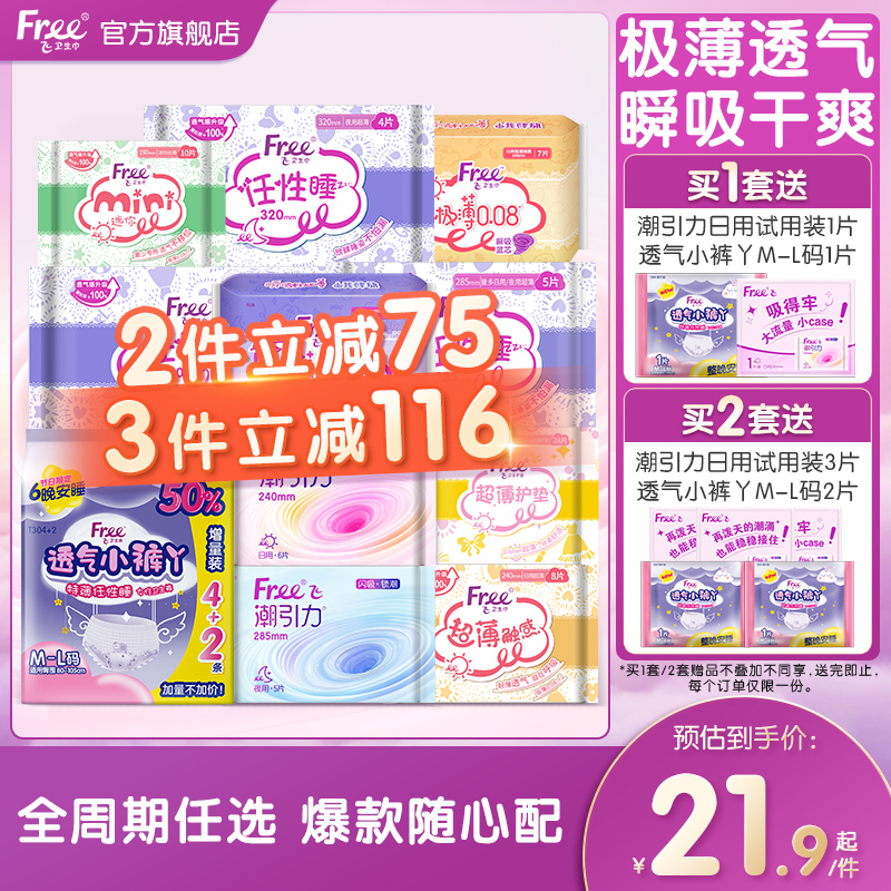 【新国标认证】free超薄触感迷你姨妈巾日夜用组合护垫卫生巾官方
