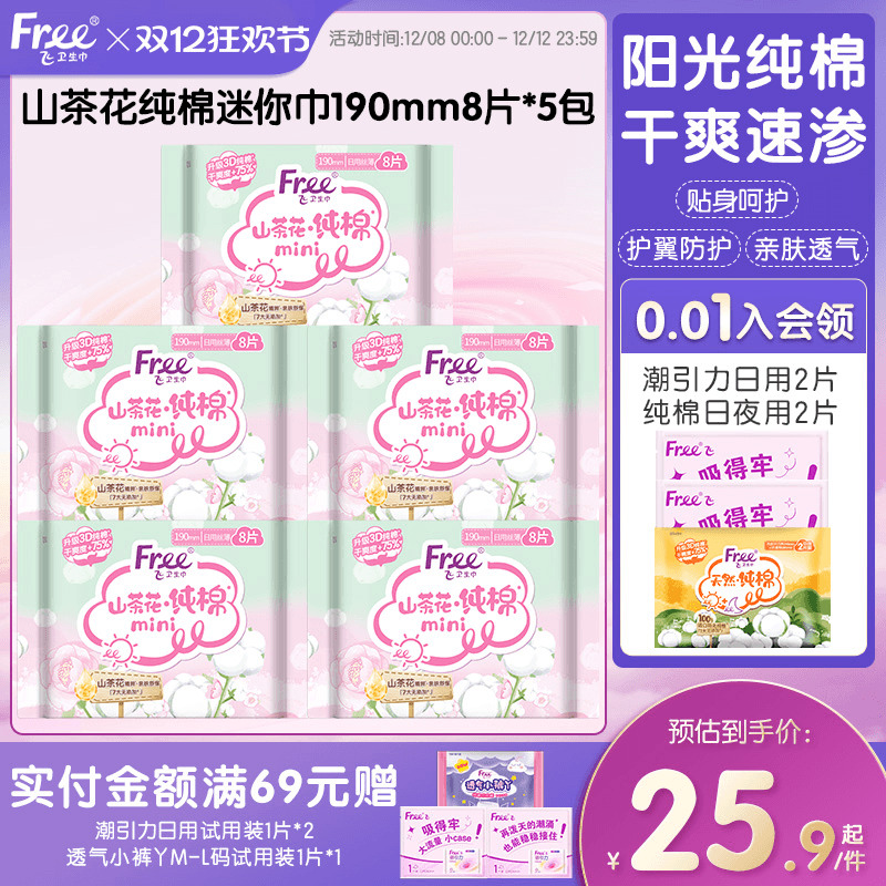 【下拉详情享优惠】Free飞卫生巾护垫迷你巾卫生巾有护翼姨妈巾