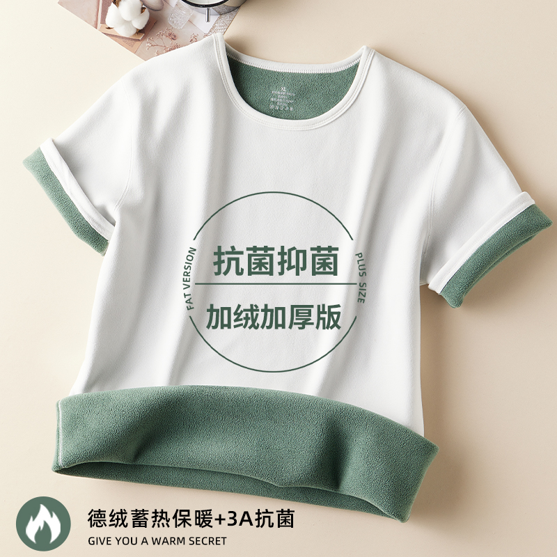 新款抗菌加绒加厚德绒短袖T恤男士保暖上衣内搭打底衫秋冬季半袖