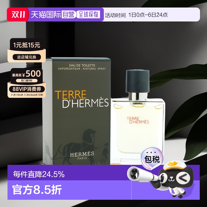 Hermes爱马仕大地男士淡香水清新淡雅木质香调清新50ml/100ml正品