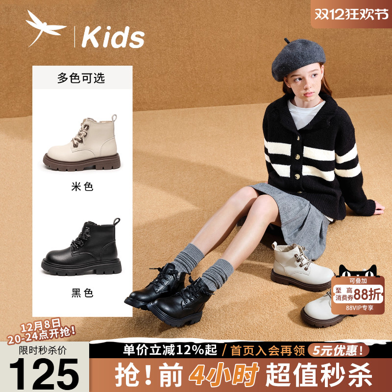 贝然女童短靴马丁靴皮靴真秋冬加绒单靴童靴女童靴男童英伦中筒靴