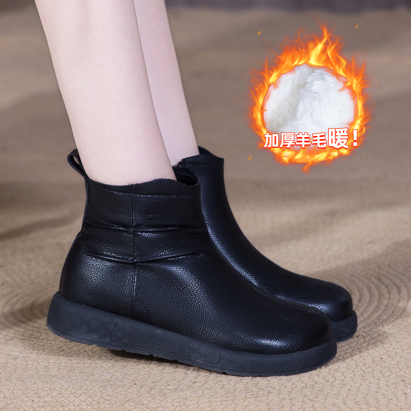 - 女靴冬季短靴平底