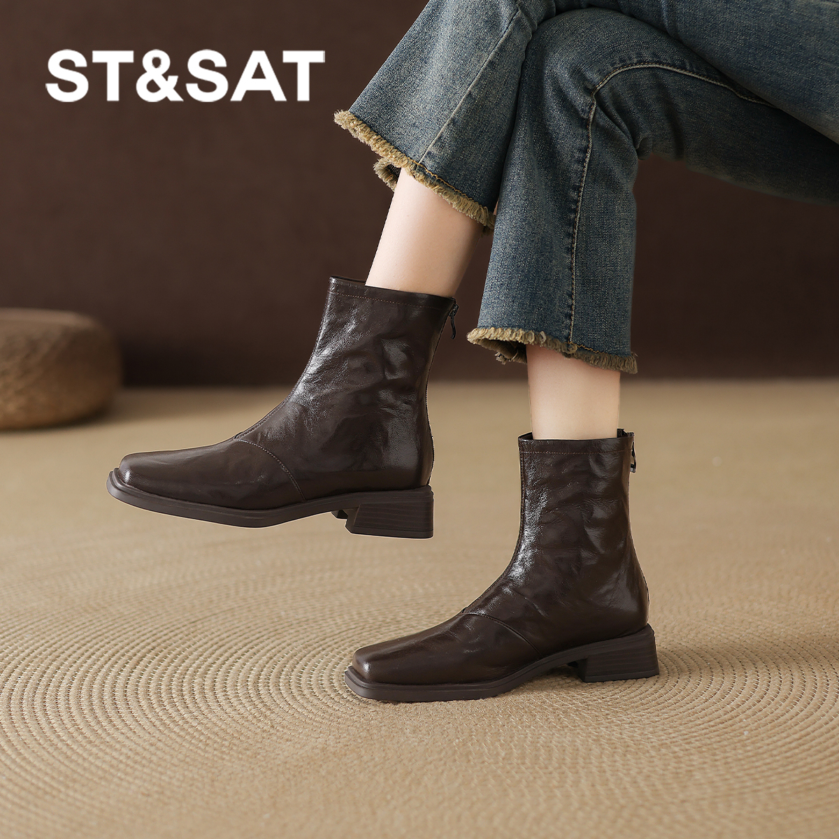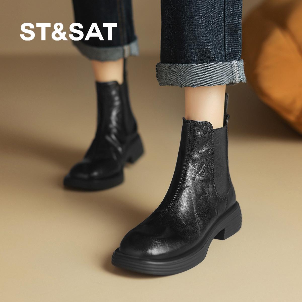 St&Sat/星期六羊皮加绒英伦马丁靴25年秋冬圆头时装靴短筒短靴女