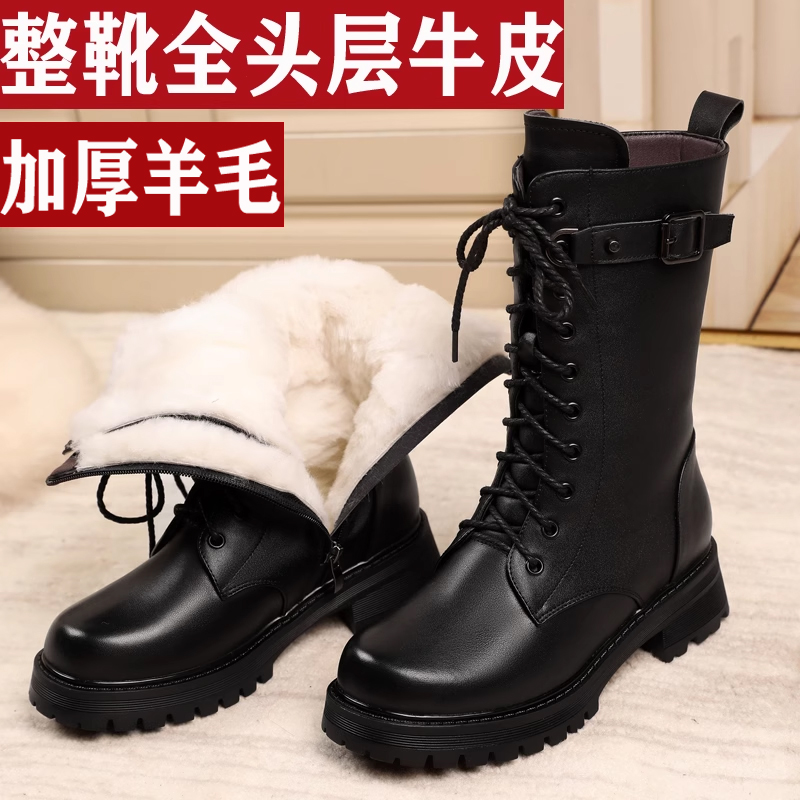 真皮女靴加绒加厚马丁靴女短靴皮毛一体中筒靴棉靴子女鞋羊毛棉鞋