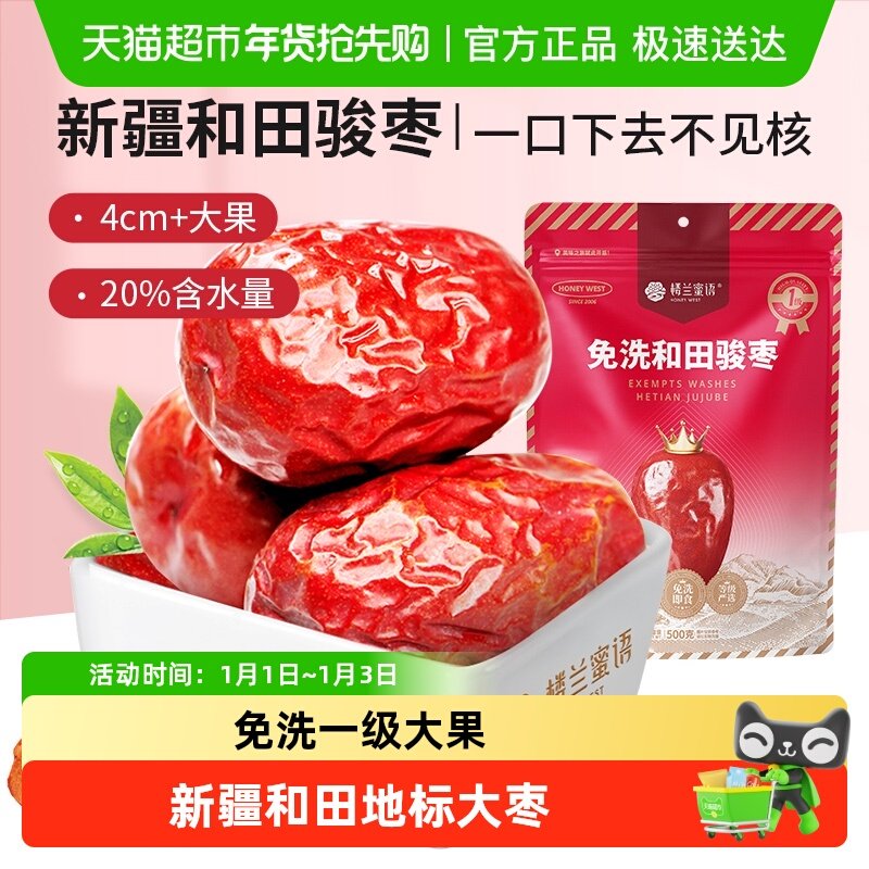 特级新疆特产灰枣和田大枣500g红枣干骏枣果干免洗即食零食国货