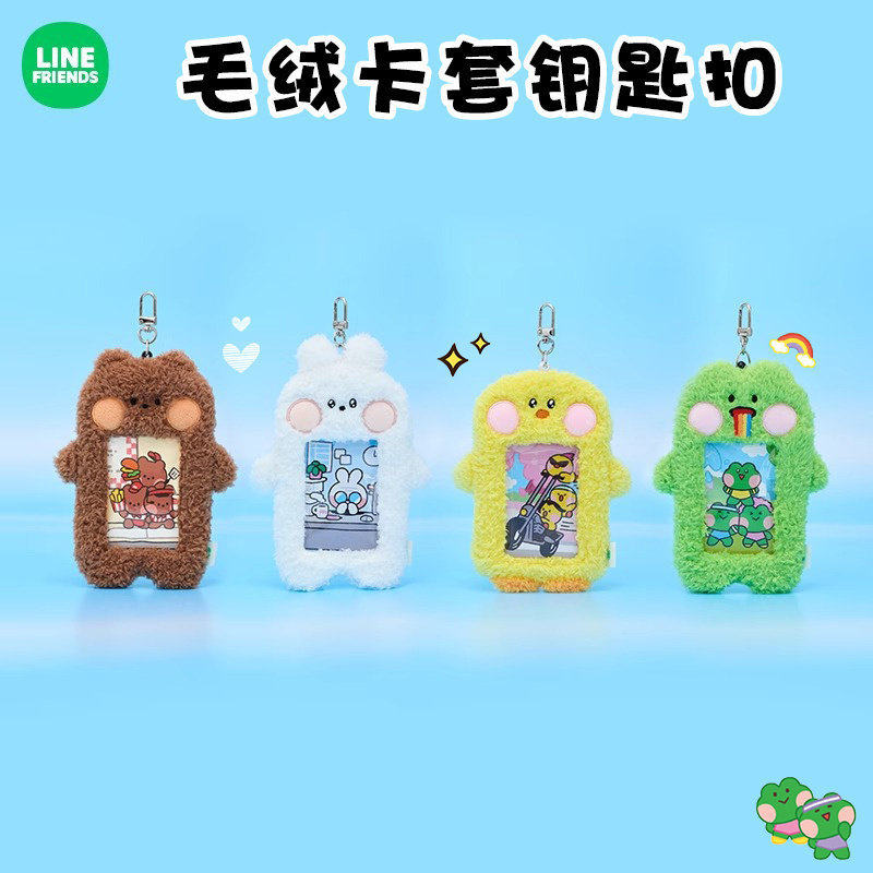 LINE FRIENDS布朗熊minini WORLD系列毛绒卡套钥匙扣包挂卡通可爱