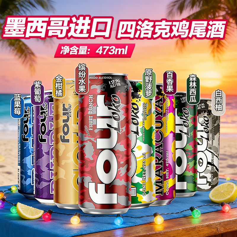 四洛克酒Four Loko预调鸡尾酒墨西哥进口微醺特调酒果味网红酒4瓶