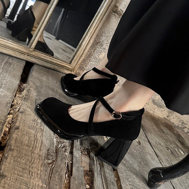 - 一字扣 粗跟