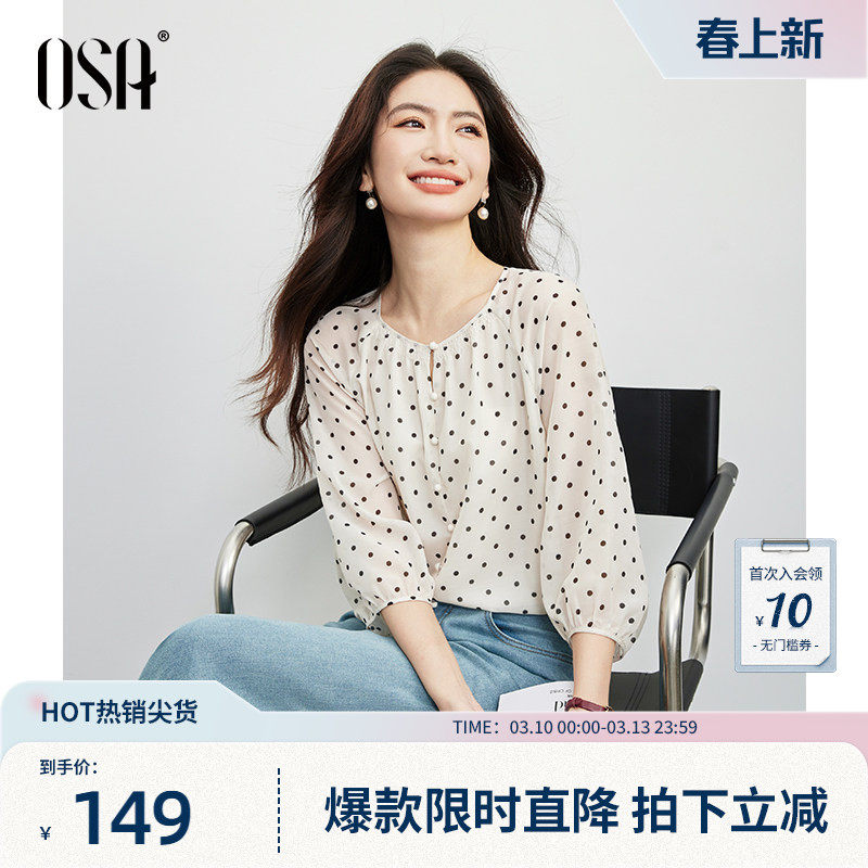 OSA欧莎法式复古波点雪纺衫女2026春季新款薄款中袖内搭衬衫上衣
