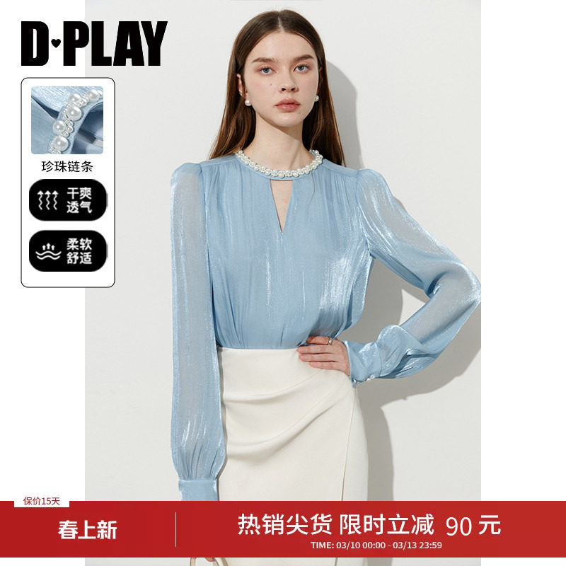 DPLAY蓝色衬衫女高级气质法式小香风上衣雪纺衫2026春季衬衣小衫