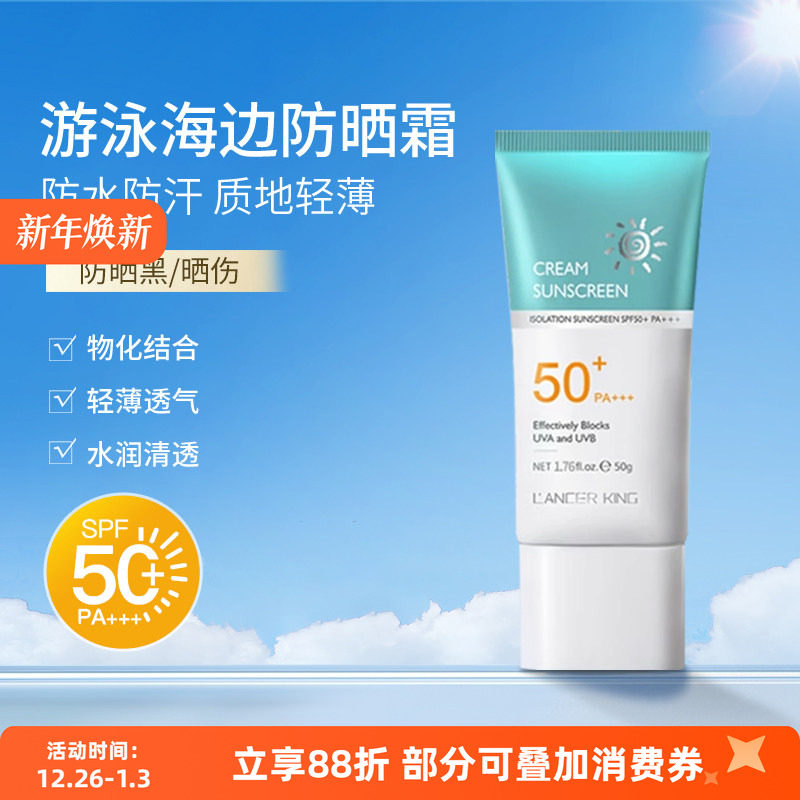 潜水冲浪级防晒霜防水防汗男女防晒乳海边户外SPF50+军训防紫外线