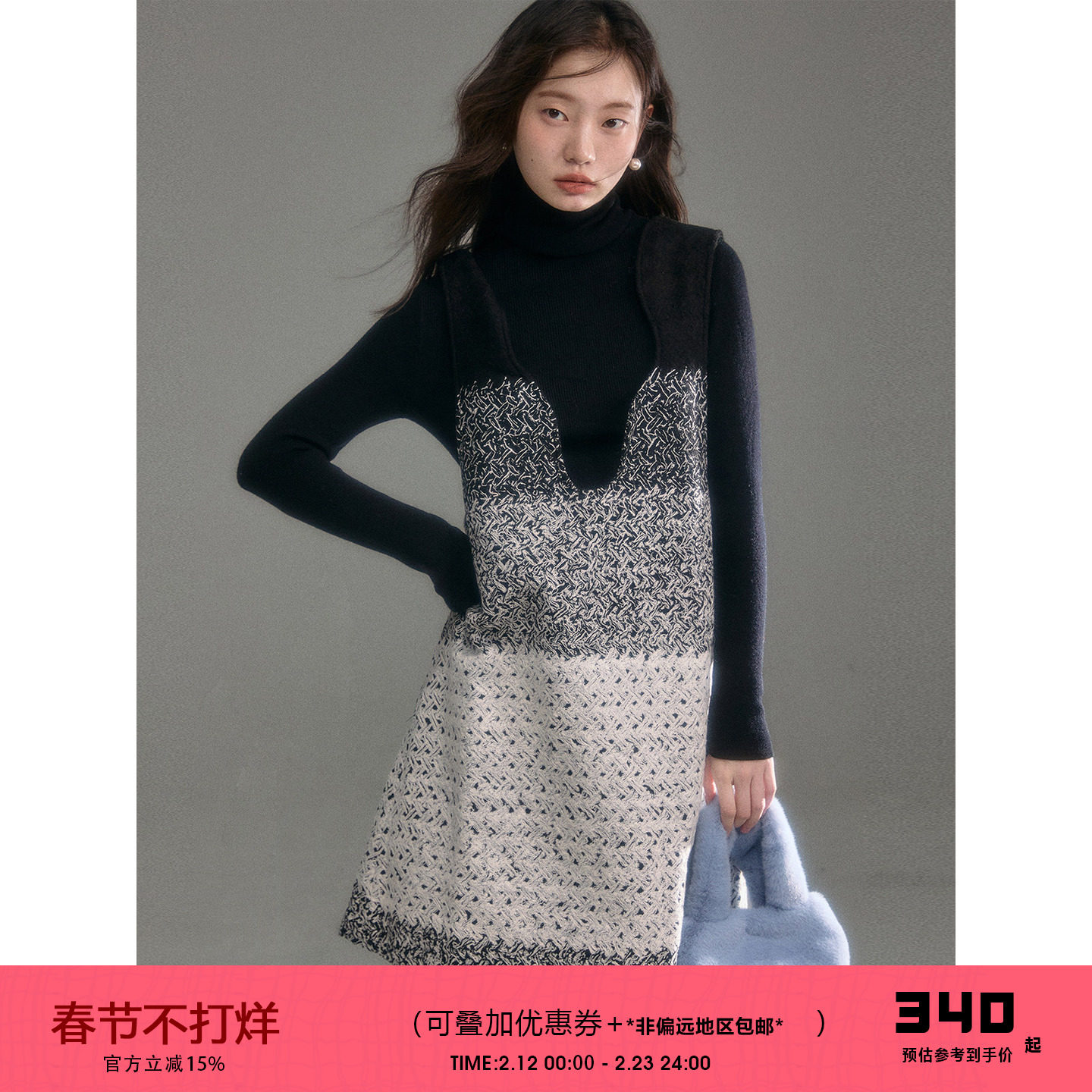 名媛小香风毛呢背带裙套装毛衣裙子显瘦背心裙女秋冬小个子连衣裙