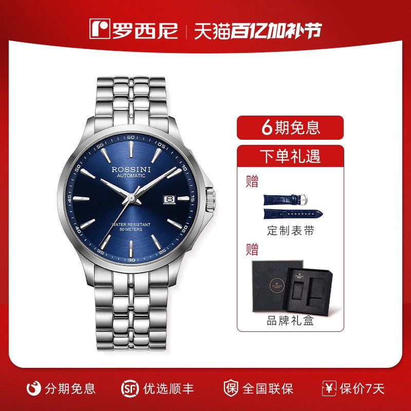 罗西尼官方手表男款正品男士机械表夜光防水商务男表礼盒5200005